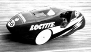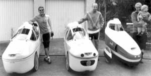 Unter dem Eindruck der ersten Ölkrise nach dem Jom-Kippur-Krieg fingen 1973 einzelne Ingenieure in Europa wieder an, über die Nutzung der Muskelkraft als Antrieb für Alltagsfahrzeuge nachzudenken. In Deutschland begann zum Beispiel Professor Schöndorf an der Fachhochschule Köln mit der Weiterentwicklung des Fahrrads zum Velomobil [Schöndorf 1995]. In Dänemark war es Carl Georg Rasmussen, der seine Kenntnisse im Bau von Flugzeugen aus Kunststoff in den Bau von Velomobilen einbrachte und seine erste »Leitra« entwickelte [Rasmussen 1993] Gleichzeitig entstand in den USA die HPV-Bewegung (human powered vehicles), die sich jedoch nicht dem Bau von Alltagsfahrzeugen verschrieb, sondern in erster Linie an Rennfahrzeugen für Geschwindigkeitsrekorde interessiert war. Ein gutes Beispiel für Rennvelomobile ist die in Bild 4 gezeigte »Windcheetah« des Engländers Mike Borrows.