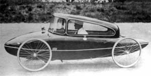 Das Velomobil ist keine neue Erfindung. Bereits in den zwanziger Jahren des vergangenen Jahrhunderts wurden, vor allem in Frankreich, Leichtfahrzeuge mit Pedalantrieb entwickelt und benutzt. Doch hatten diese als Velocars bezeichneten verkleideten Drei- und Vierräder gegenüber dem aufkommenden Automobil keine Überlebenschance, sicher auch deshalb nicht, weil die Werkstoffe, mit denen ein Leichtbau möglich gewesen wäre, noch nicht verfügbar waren. Auch so elegante Fahrzeuge wie das mit den Armen geruderte »Landskiff« von Manfred Curry in Bild 3 waren chancenlos.