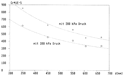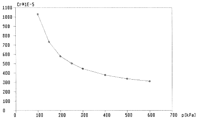 Im Bild 2 sieht man die Abhängigkeit des Rollwiderstandsbeiwertes vom Reifendruck für einen Continental Top Touring 37-622. Bei niedrigen Drücken macht sich eine Druckerhöhung viel stärker bemerkbar als bei hohen Drücken. Schwach aufgepumpte Reifen federn zwar gut, haben aber einen deutlich höheren Rollwiderstand als bei Nenndruck Bei Hochdruckreifen dagegen ist der Unterschied zwischen z. B. 800 und 900 kPa (8 und 9 bar) nur noch geringfügig.