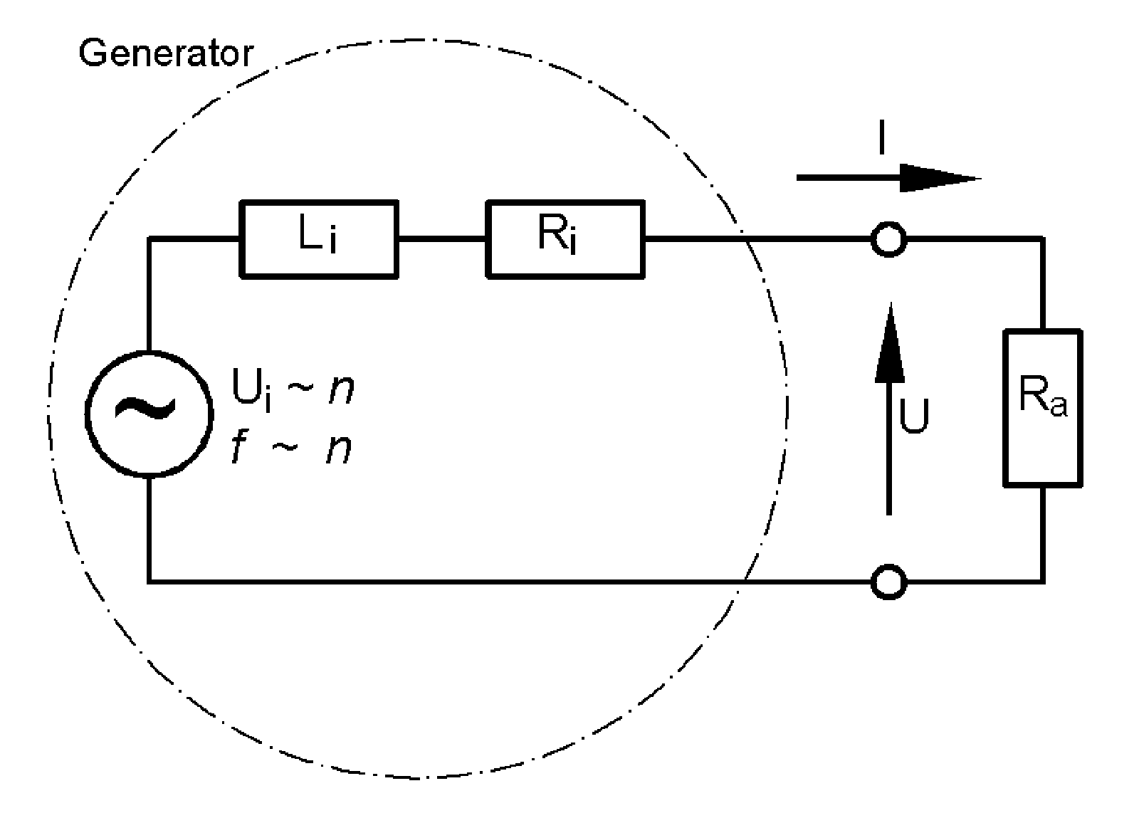 Ersatzschaubild (Bild 2) erfassen. Es beschreibt den Generator als Spannungsquelle,