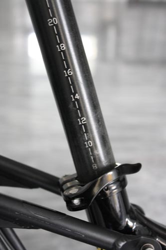 Noch größere Fahrer sollten aber den Sportvorbau erwägen, den es (einmal ohne Aufpreis!) als Option wählbar gibt und der den Sitzabstand je nach Lenkerhöhe um bis zu 130 mm erhöht. Auch lässt sich die Sattelstütze um 180° drehen, was aber leider nicht nur den Sitzabstand, sondern auch das Packmaß um 20–30 mm verlängert. Dafür sind dann die Einstecktiefenmarkierungen auf der richtigen Seite …