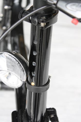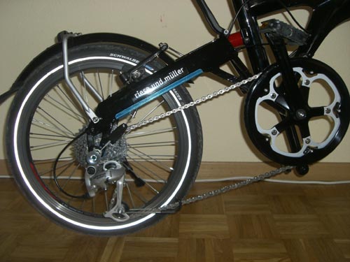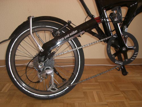 Beim Thema Faltbarkeit kommt es auf die Erwartungshaltung an. Das Falten an sich geht einem rasch in Fleisch und Blut über und lässt sich auch recht flott bewerkstelligen. Das Vorderradschutzblech und die Schwingenkante werden auf Dauer etwas abgescheuert, hier fehlen die sonst sehr sorgfältig verteilten »Protektoren«. Dies vor Allem, weil sich die Vorderradschwinge nur mit etwas »Nachhilfe« in Faltposition drehen lässt. Man kann an der Schwingen-Lagerung zwar das Spiel einstellen, zu sehr wollte ich diese jedoch auch nicht lockern.