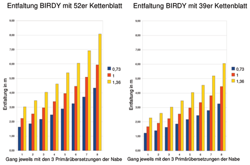 Diese Maßnahme verschiebt den Übersetzungsbereich hin zu kleineren Entfaltungen. Eine Minimalentfaltung von 1 m wird nicht erreicht, aber 1,30 m helfen am Berg schon weiter.