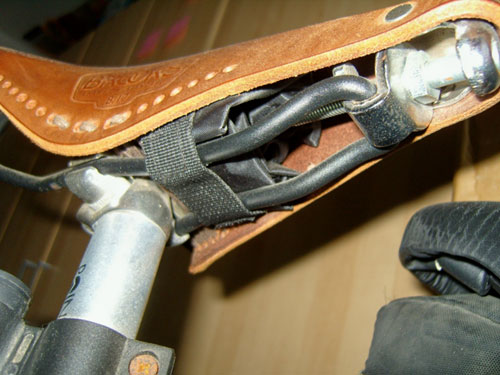 Das Nachspannen darf nicht vernachlässigt, aber auch nicht übertrieben werden. Auch das tue ich nach Gefühl. Ich weiß aber, dass die Spannnug nicht zu groß werden darf. Mit einem Sattelüberzug, den ich bei Nichtbenutzung in der Sattelnase verstecke, ist der Brooks-Sattel auch alltagstauglich.