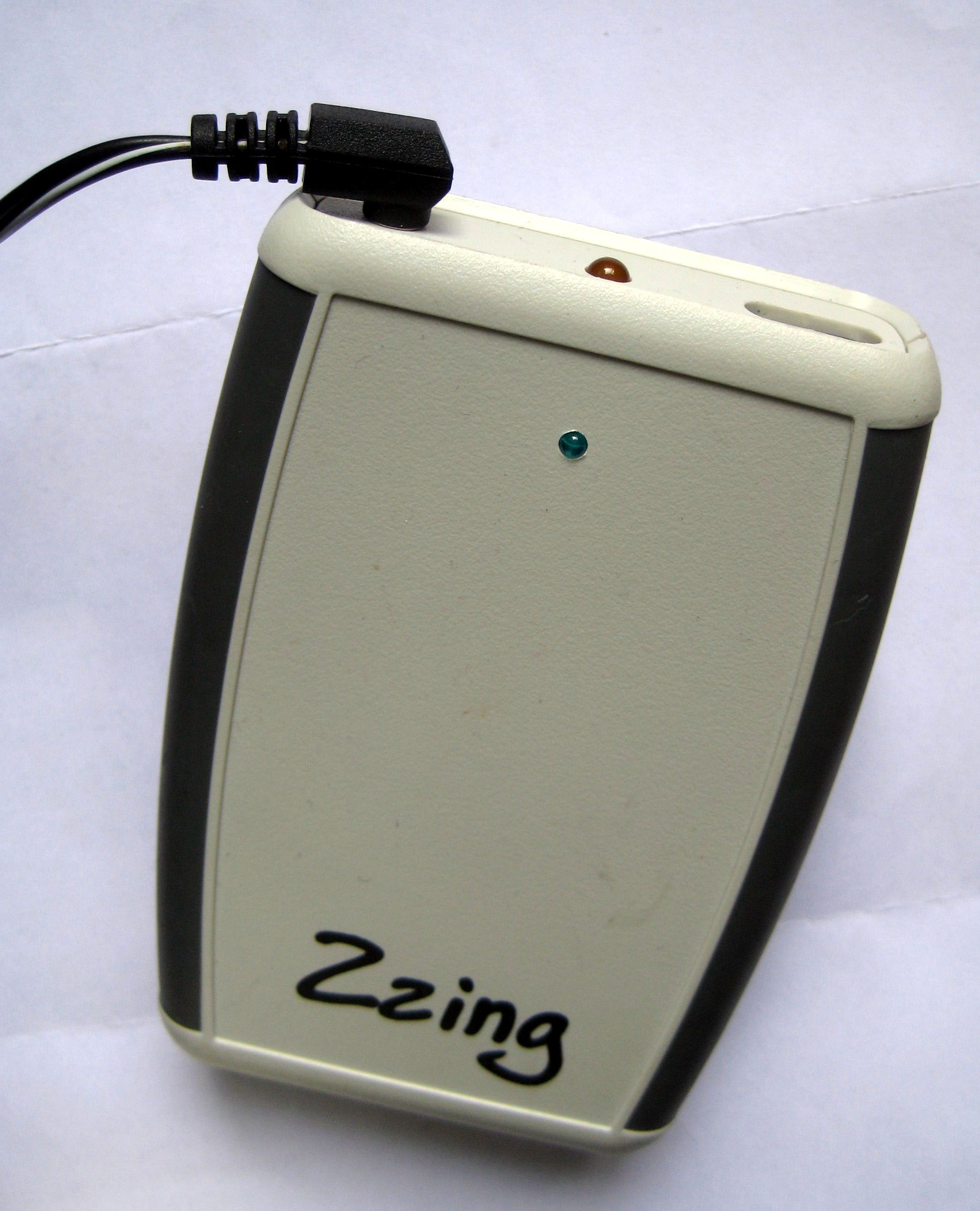 Ebenfalls schon über ein Jahr verfügbar ist das »Zzing«. In einem reichlich Zigarettenschachtel-großen Kunststoff-Gehäuse befindet sich hier ein verschweißter Akkupack aus 5 NiMH-Zellen im AA-Format. Zur Befestigung wird ein Klick-Fix-Halter zur Lenkermontage mitgeliefert. Ein Schiebeschalter kontrolliert die Spannung an der USB-Buchse. Eine blaue LED signalisiert den Ladevorgang, eine gelbe die eingeschaltete USB-Spannung. Das Gehäuse kann mittels Schraubendreher geöffnet und der Akkupack ersetzt werden. Bei starkem Regen sollte das Gerät vermutlich auch besser in ein wasserdichte Tasche wandern.