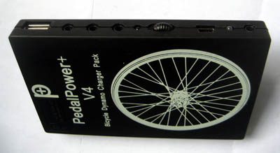 | Pedalpower + Universal Cable | Pedalpower | 48 g | 60 € | Adapter-Stecker für verschiedene Mobiltelefone | 5,46 V | 519 mA | Beleuchtung unwesentlich reduziert, 0,2–0,5 W Ladeleistung | spritzwasserdicht | ||