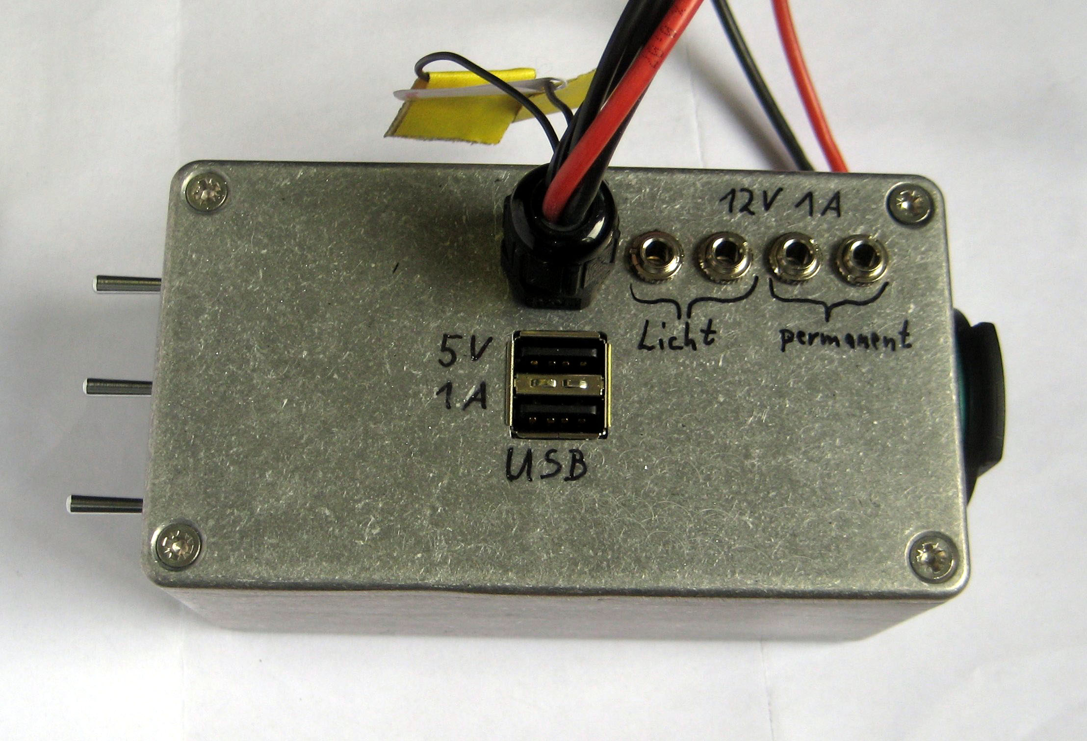 | Minimal-Lader | 48 g | Bauteile ca. 5 € | 2× USB-Buchse | 5,01 V | 467 mA | Beleuchtung deutlich reduziert, 1–1,6 W Ladeleistung | Elektronik vergossen, aber USB- Buchse offen | |||