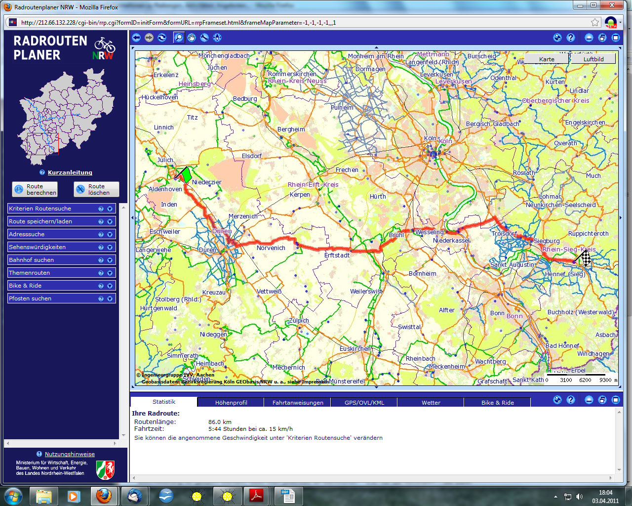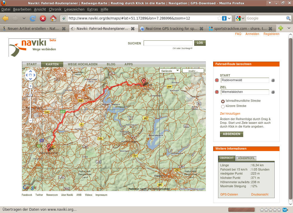 Bild 2–3: Radroutenplaner – oben Naviki, unten Routenplaner NRW – sehen heute noch recht verschiedenartig aus, und ihre Daten stammen aus verschiedenen Quellen - Die Information