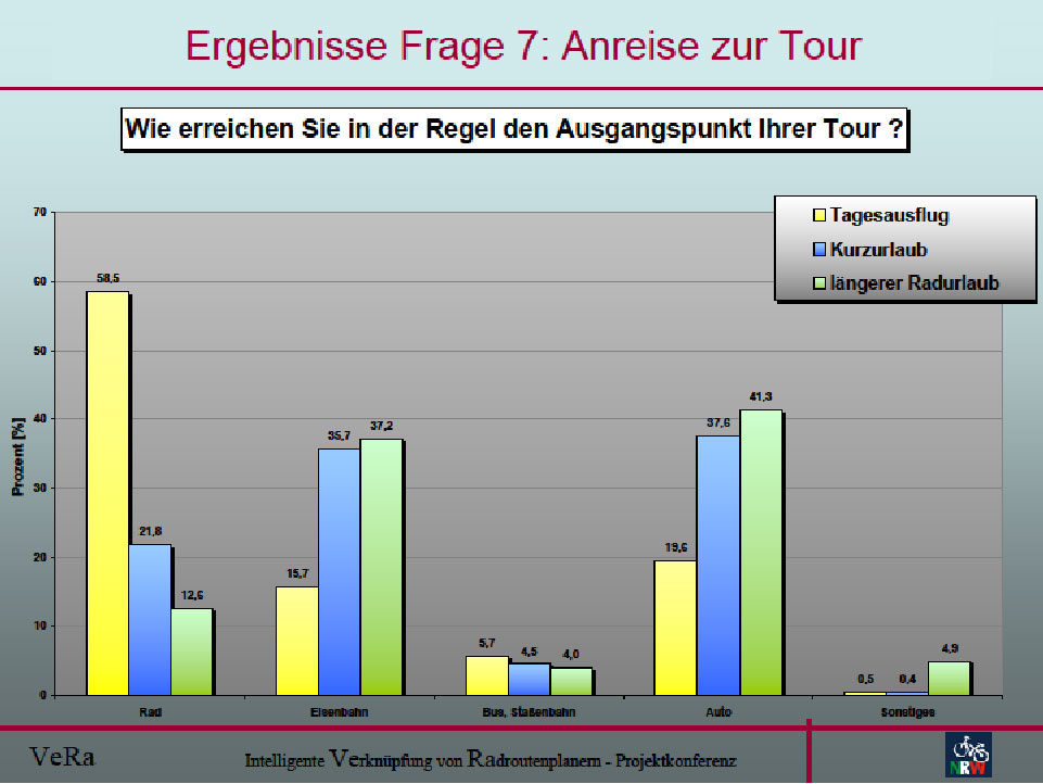 Bild 4: Für Radausflüge sind auch andere Verkehrsmittel relevant – Ergebnis einer Online-Befragung in NRW