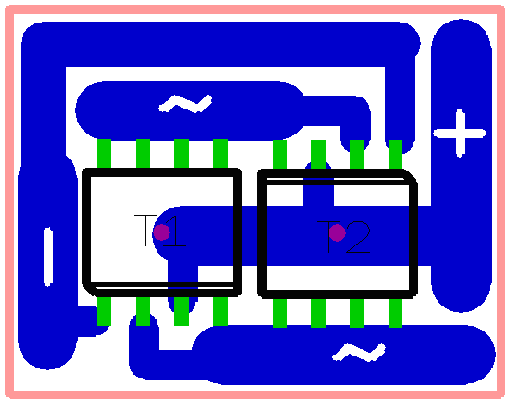 Zwei N-Kanal-Mosfets werden mit ihren Sources an den negativen gleichgerichteten Ausgang geschaltet, entsprechend zwei P-Kanal Mosfets an den positiven Ausgang. Die Gates werden jeweils an die gegenüber liegenden Wechselspannungs-Eingänge gelegt. Das ist eigentlich schon alles.