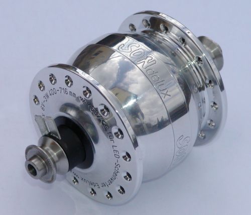 Ende 2009 brachte Schmidt Maschinenbau aus Tübingen mit dem SONdelux einen 384 g leichten und besonders verlustarmen Dynamo auf den Markt, der mit seinen kompakten, kugelähnlichen Abmessungen deutlich von der Gestalt bisheriger, eher zylinderförmiger Nabendynamos abwich. Der SONdelux ist nur für den Betrieb mit dem LED-Scheinwerfer Edelux zugelassen, weil er bei langsamer Fahrt weniger Leistung als nach StVZO gefordert liefert. Ende 2011 folgte bei Schmidt der SON28 dem gestalterischen Vorbild des SONdelux. Ebenso rundlich aber etwas breiter und 440 g schwer ist er nun für alle Scheinwerfer zugelassen und der erste Nabendynamo, dessen Zulassung auch »fette Twentyniner« umfasst.