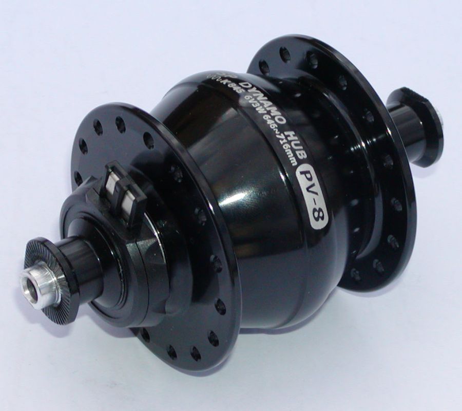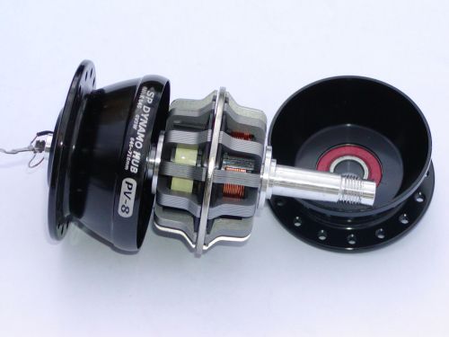Anfang 2011 taucht aus dem Nichts ein bisher unbekannter Hersteller mit interessanten Produkten auf: Shutter Precision bzw. SP-Dynamo aus Taiwan. Wie der Name sagt, war diese Firma zunächst im Bereich Kameraverschlüsse tätig. Der Inhaber hat dann aber viel Hirnschmalz in die Generatorentwicklung gesteckt, was in etlichen Patenten resultierte. Das erste Produkt war ein mechanisch abschaltbarer, getriebeloser Nabendynamo. In der westlichen Welt bekannt wurde dieser durch den US-amerikanischen Händler/Importeur VeloOrange, der diesen Nabendynamo als revolutionär und »game changing« ankündigte, und einige Monate mit eigenem Firmenlogo verkaufte, dann aber ohne explizite Begründung wieder aus dem Programm nahm. Das Modell HB013, mit 6 V – 2,4 W beschriftet, wiegt 636 g. Das Modell HB011, mit 6 V – 3 W beschriftet, wiegt 680 g.