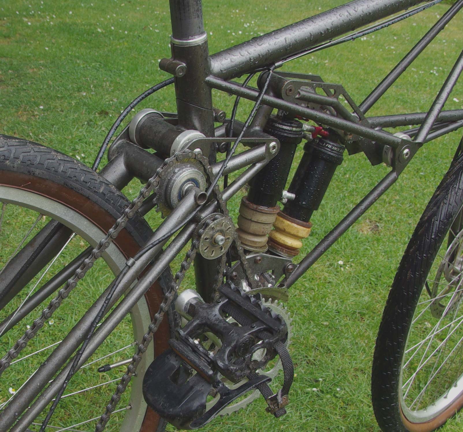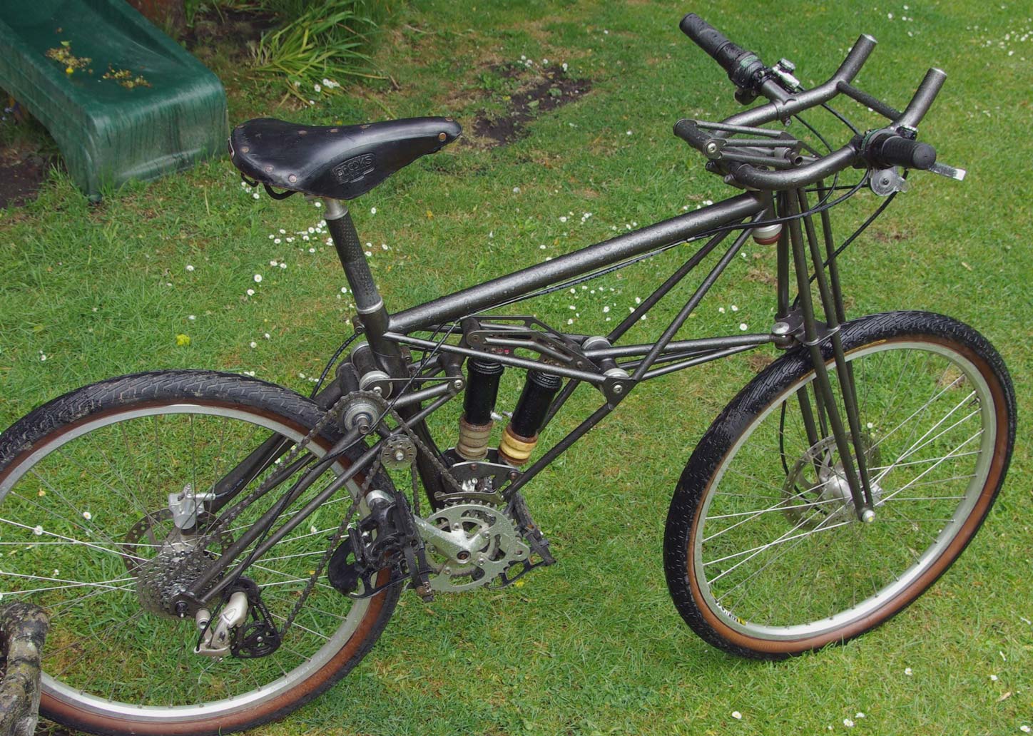 Mein Projekt begann ich mit einem sehr billig erstandenen, vollgefederten Rad, das wegen meiner rudimentären Fertigungsmöglichkeiten in meinem Gartenschuppen eher einem Frankenstein verwandten Ungeheuer als einem Fahrrad glich. Das Arbeitsergebnis knirschte und ratterte die Straße entlang, aber ich konnte – das persönliche Risiko außer Acht lassend – erkennen, dass das Rad prinzipiell so funktionierte, wie ich es erhofft hatte. Natürlich wäre es unmöglich gewesen, solch einen Haufen zusammengeschraubten Metalls irgendjemandem zu präsentieren und damit Interesse zu wecken. Ich brauchte einen Prototyp entschieden besserer Qualität. Einen solchen zu bauen konnte ich Dave Wrath-Sharman von der Firma Highpath-Design and Development gewinnen, mit einem Zuschuss von Advantage West Midlands waren 50 % der Kosten gedeckt, und so konnte es losgehen.