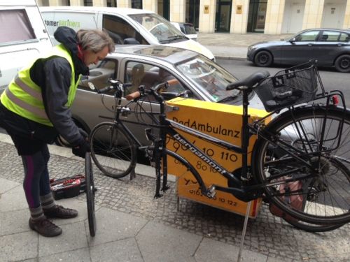 Seit mittlerweile zehn Jahren betreibe ich in Berlin die RadAmbulanz, eine mobile Fahrradwerkstatt, mit der ich als Kleinunternehmer kleinere Fahrradprobleme vor Ort beseitige.