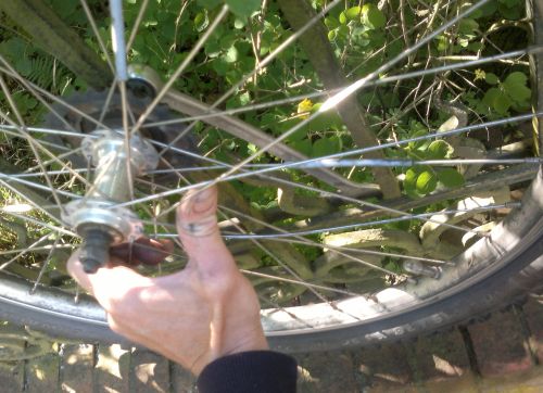 Für mich bedeutet diese Beschränkung auf das Nötigste, dass ich vor jedem Einsatz die KundInnen befragen muss, was denn kaputt ist, und entsprechend renne ich vor dem Losfahren stets in den Keller, um die heutigen Teile einzupacken. Höre ich das Schlüsselwort »Hollandrad«, packe ich gleich noch einen 635er Reifen und eine breite Kette mit ein, egal ob's um Reifenprobleme geht oder nicht (in Bocholt oder Düsseldorf hätte ich den Reifen allerdings auch immer dabei, hier in Berlin fahren wirklich wenige Holländer).