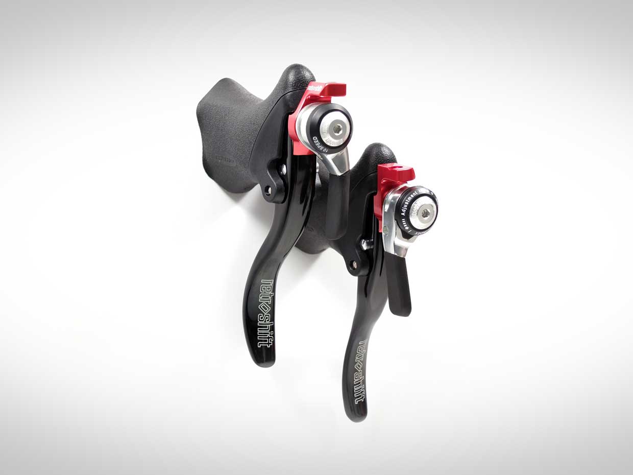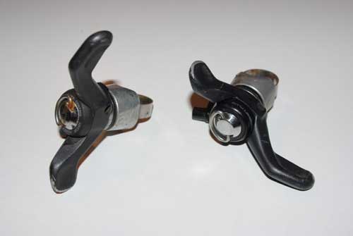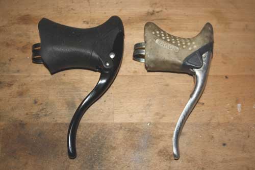 Ergonomisch war dies ein großer Fortschritt im Vergleich zu Lenkerendhebeln, für die ich aus meiner hauptsächlichen Griffposition »on the hoods« weit umgreifen musste. Nicht zu reden von »klassischen« Unterrohrschalthebeln. Doch es gab früher auch bereits andere, ergonomische Lösungen: Der »Suntour Command-Shifter« (7-fach) ließe ich ebenfalls mit einem beliebigen Bremshebel kombinieren und bot vielfältige Greifpositionen.