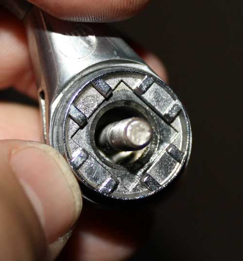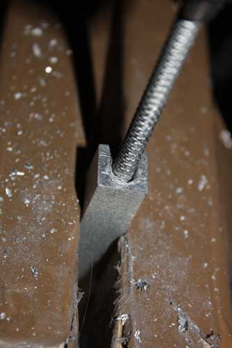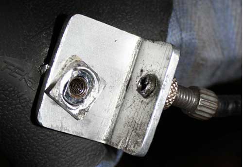 Ist diese Klippe genommen, kann man sich an die Herstellung der Zuggegenhalter machen. Auch hier wieder die Empfehlung, links zu beginnen. Wenn es rechts wackelt oder rutscht, leidet die Schaltperformance beträchtlich. Auf der rechten Seite sollte daher dieser Gegenhalter auch formschlüssig zur oben genannten Gegenmutter sein und nicht nur durch die Spannkraft der Befestigungsschraube fixiert werden.