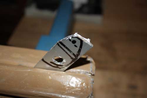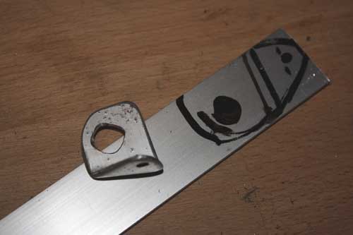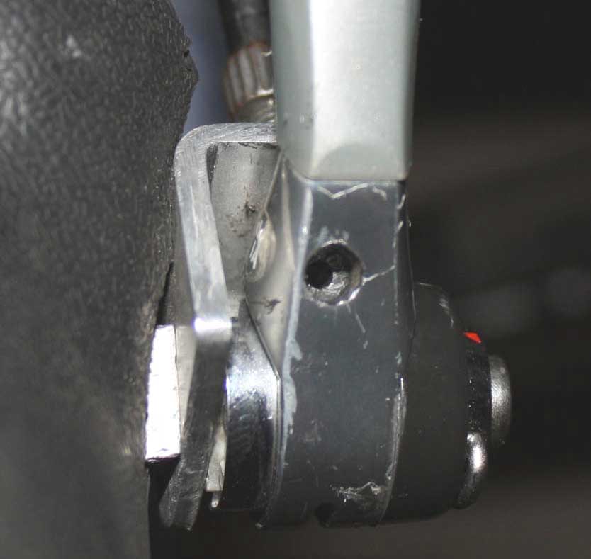 Als Ausgangsmaterial habe ich zunächst Aluminiumprofil 25 mm × 2 mm genommen. Die ist insbesondere für die rechte Seite nicht sinnvoll. Zum einen verformt sich das Material beim Schalten elastisch zu stark, die Schaltgenauigkeit leidet. Zum anderen lässt sich in dickeres Material ein robusteres Gewinde schneiden, das auf der rechten Seite zur Fein-Synchronisation unterwegs sehr zu empfehlen ist. Links ist eine solche Stellschraube nicht notwendig. Ich habe schließlich 4mm Material genommen und ein M6-Gewinde geschnitten sowie eine passende Stellschraube mit Rändelmutter zum Kontern montiert.