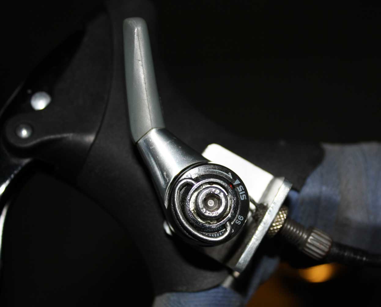 Zuerst werden die Schalthebel zerlegt. Dies ist schnell gemacht: Beide Lenkerendhebel haben je eine zentrale Schraube, die nach Lösen die Gegenmutter und die Innenklemmung freigibt. Letztere und die Schrauben werden im Weiteren nicht mehr gebraucht. Viel Zeit sollte man auf die Suche nach der optimalen Position verwenden. Dabei sollte die Bremsgriffposition, Vorbaulänge und Lenkerneigung natürlich bereits feststehen. Dann heißt es: aufs Rad setzten und ausprobieren. Da der zu bestreitende Winkel rechts fast 180° ausmacht, muss man hier die Position in verschiedenen Schaltstufen und auch die jeweilige Daumenhaltung sehr genau austarieren.