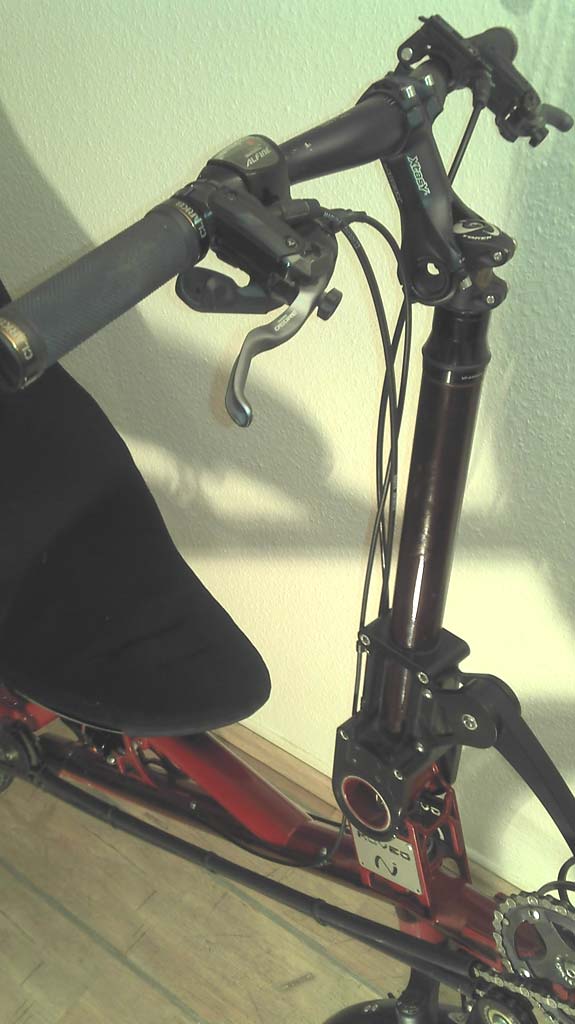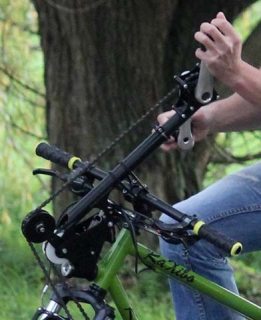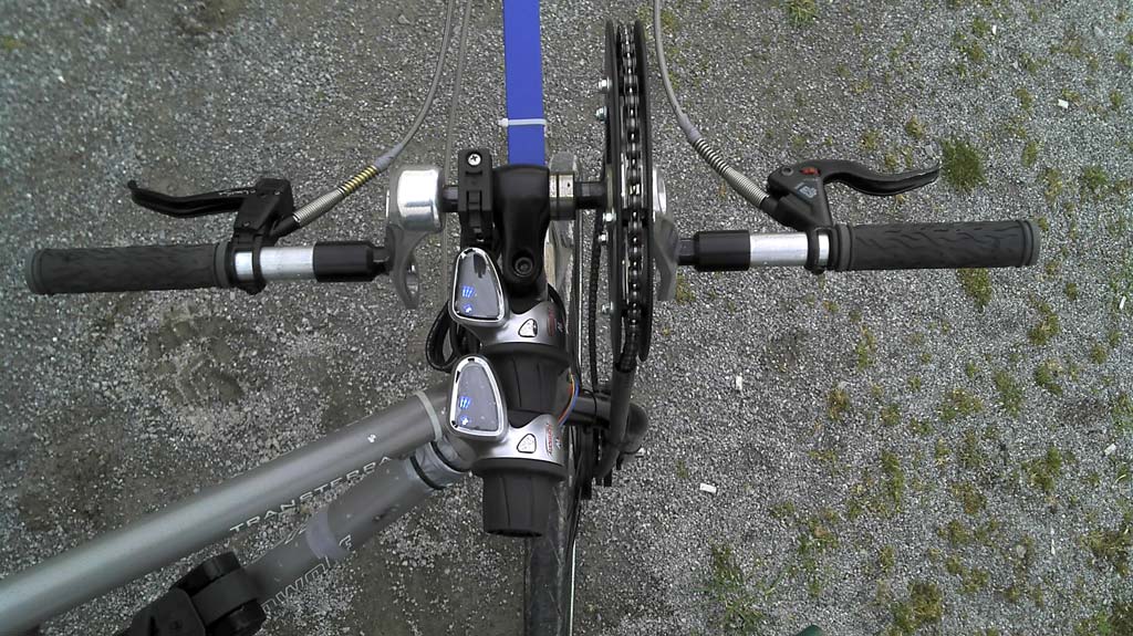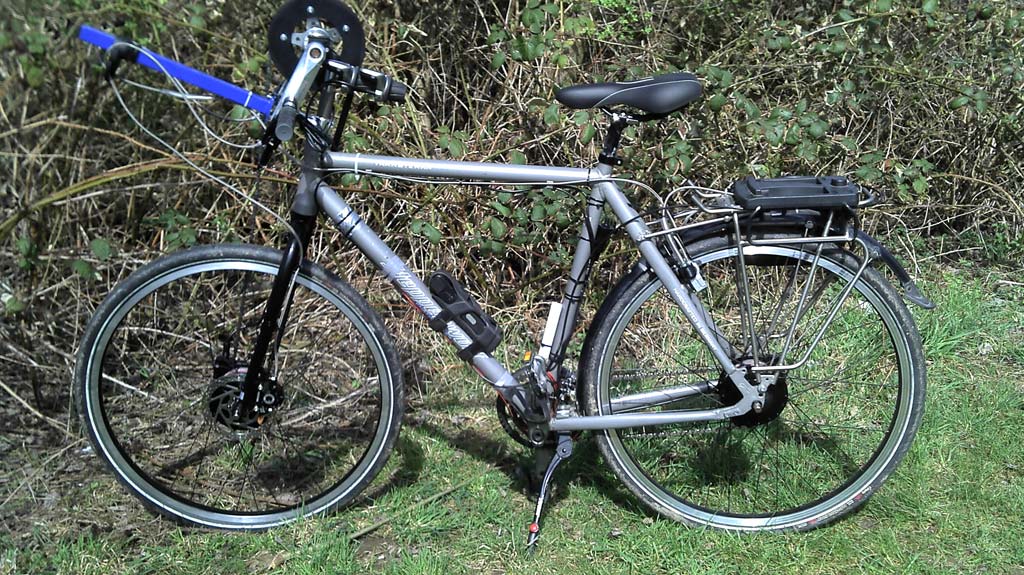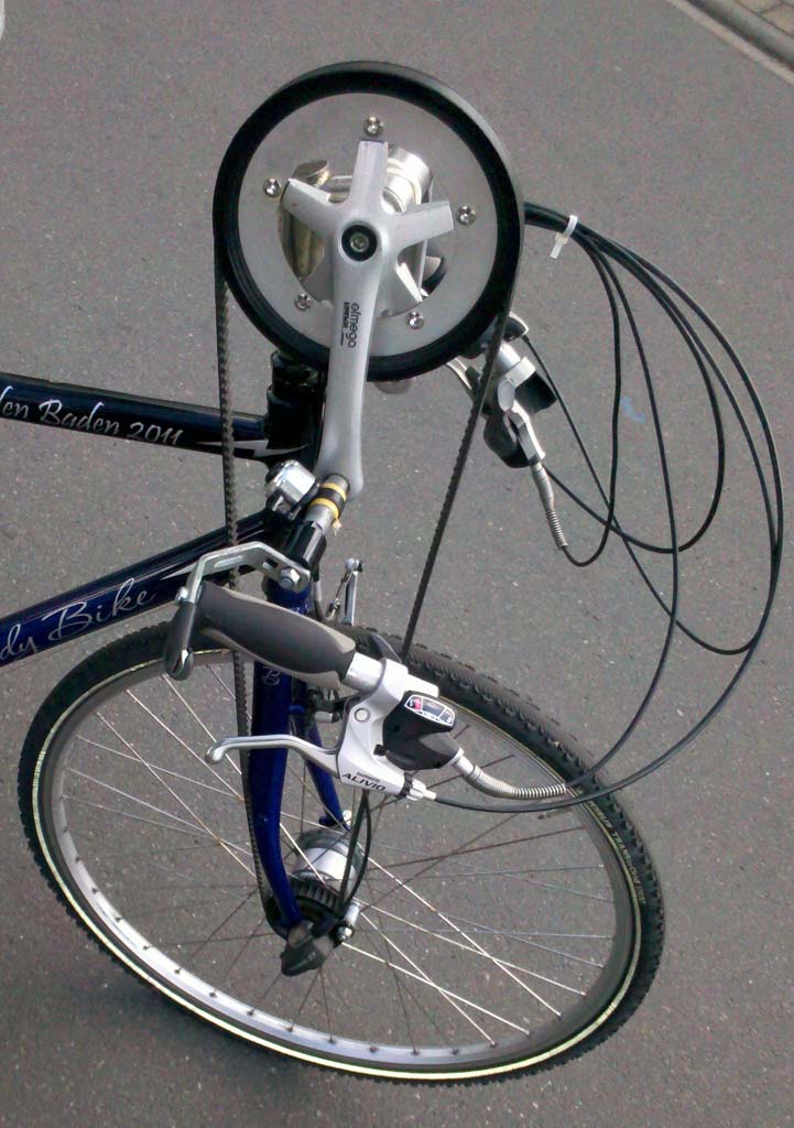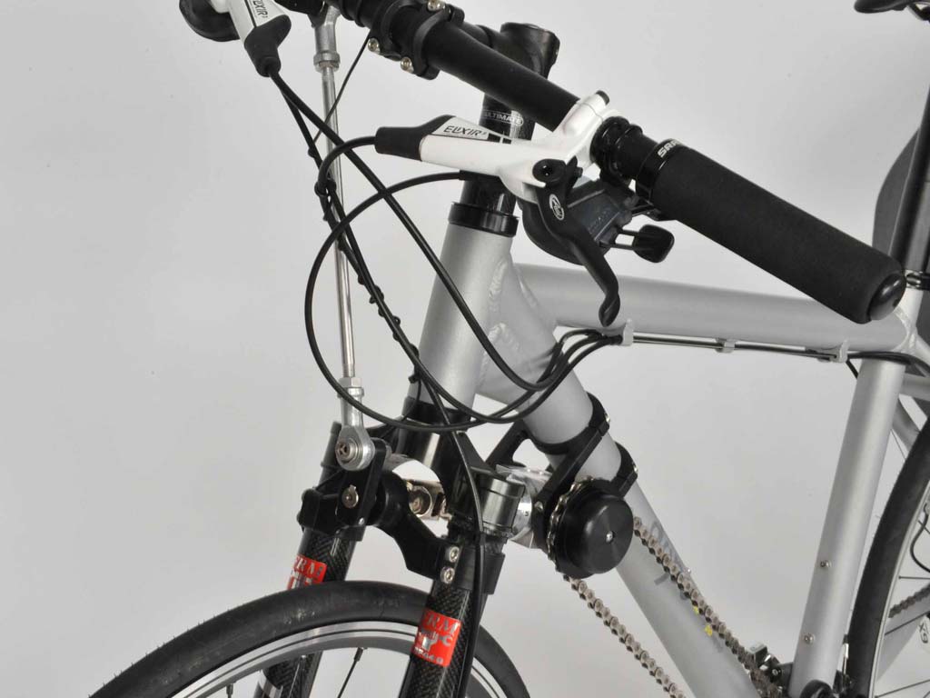 Dreh- und Angelpunkt dieses Prototypen des Autors sind zwei Nuvinci N360 Harmony-Schaltungen, die im Vorder- und Hinterrad verbaut sind. Diese automatischen Nabenschaltungen ermöglichen es, dass Hand- und Fußantriebskräfte bei jeder Geschwindigkeit automatisch aufeinander abgestimmt werden. So genial dieses System dank der Nuvinci N360 Harmony ist, bedingt eben diese Schaltung in der Praxis gleichzeitig auch nennenswerte Nachteile: ein hohes Gewicht der beiden Nabenschaltungen, ihr vorne und hinten spürbarer Wirkungsgradverlust (siehe auch der Artikel Wirkungsgradmessungen an Nabenschaltungen – Teil 2) und last but not least die Erfordernis, die Schaltungen durch einen Akku mit Strom zu versorgen.