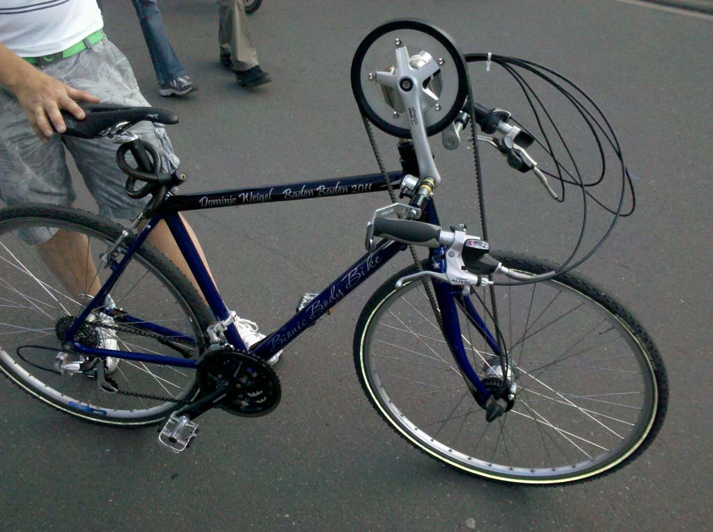 Das Bionic Body Bike von Dominik Weigel war das HF-Bike, welches meine Begeisterung für diese Fahrradgattung entflammen ließ. Die Optionalität des Handantriebs und die synchron rotierende Antriebsbewegung erlauben ein schnelles Erlernen und einen spürbaren Kraftzuwachs, vor allem beim Beschleunigen. Toll ist, dass der Lenker inzwischen in jeder Position fixiert werden kann – das erhöht die Alltagstauglichkeit des Bionic Body Bikes noch mehr. Trotz der eigenen Schaltung für den Handantrieb ist es in der Praxis nicht einfach, sowohl für den Hand- als auch für den Fußantrieb eine passende Übersetzung zu finden.