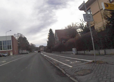 Mit Unterstützung einer großen Radfahrervereinigung wurden in Rostock fast alle relevanten Hauptstrecken fahrbahnbereinigt – die Bahn ist also rein den Autos vorbehalten; »Schutzstreifen« werden allgemeinhin als »eigene Spur« betrachtet. Weil ich mir aber, so an den Rand gedrängt, das Rad fahren nicht nehmen lassen will, fing ich 2009 an, mich zu informieren und mit den Ämtern regen Schriftwechsel zu führen. Als Beispiel hier die für mich wichtigste Straße: