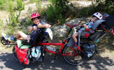 Wie den meisten fahrrad-affinen Eltern stellte sich bei unseren damals noch sehr kleinen Kindern die Frage des Transportes mittels Fahrrad im Alltag und im Urlaub. Bis zum Alter von ca. drei Jahren wurde der Nachwuchs in einen hochwertigen Kinder-Anhänger gesteckt. Leider waren die kindlichen Animositäten untereinander teilweise so stark, dass bald eine »Trennwand« zwischen das Transportgut eingebaut werden musste, um den Dauerstreit möglichst zu vermeiden.