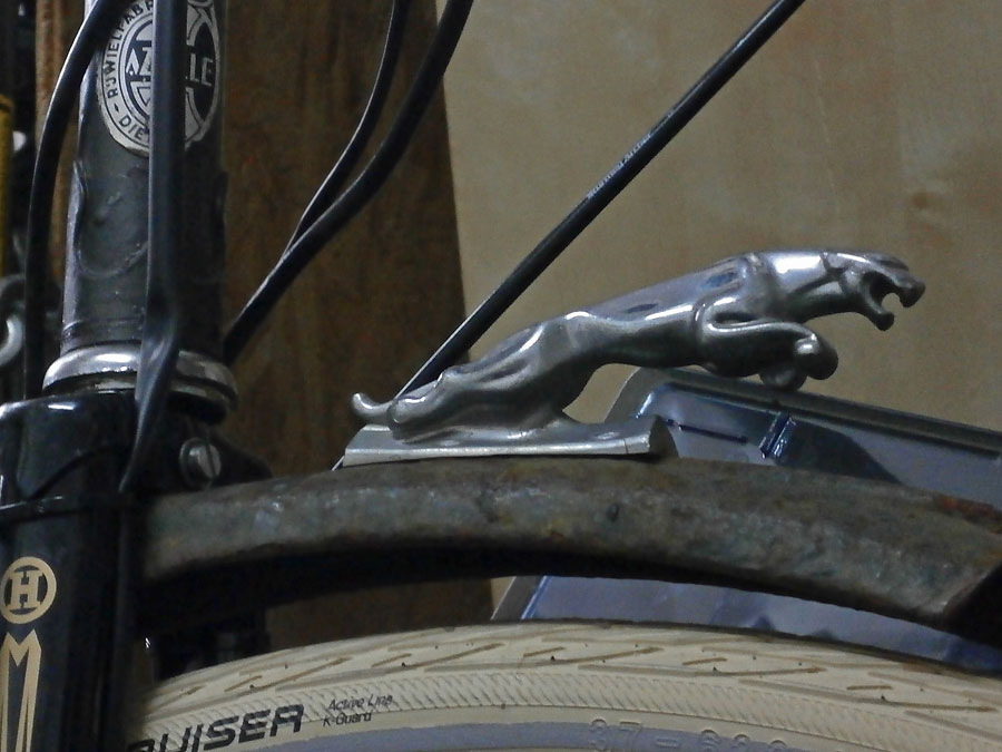 So war das … Auf jeden Fall: Seit einigen Jahren fahre ich mit meinem Hollandrad auch in Tübingen. Ein ideales Alltagsgefährt. Leider zwischenzeitlich etwas heruntergekommen, da Ersatzteile in Tübinger Läden schwer zu bekommen waren. Immerhin hat mein altes Hollandrad einen Jaguar auf dem vorderen Schutzblech. Das Plastik-Imitat hatte ich vor einigen Jahren von meiner damaligen Chefin Annemarie als Abschiedsgeschenk bekommen, bevor ich Amsterdam wieder gen Tübingen verließ. Sie hatte einmal einem Fahrrad-Accessoires-Vertreter eine Plastiktüte mit wenigen Rest-Jaguars abgekauft und verschenkt sie seither in homöopathischen Dosen an gute Freundinnen und Freunde.