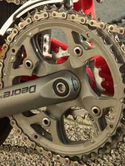 Auch wird oft die Befürchtung geäußert, der Schaltvorgang vom kleinsten Kettenblatt auf das mittlere sei nur sehr träge und ohne Last zu bewerkstelligen. Ein mit guten Steighilfen versehenes mittleres Kettenblatt läßt die Kette, auch bei Zahndifferenzen von deutlich über 20 Zähnen, unter Last an leichten Steigungen lautlos und zuverlässig schalten. Dazu später mehr.