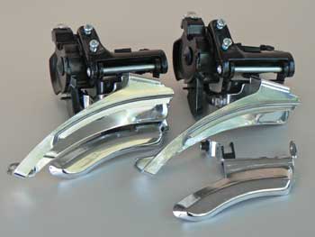 Aktuelle MTB-Umwerfer, die für eine Differenz von 12 Zähnen zwischen mittlerem und großem Kettenblatt vorgesehen sind, bieten dafür nicht genügend Fleisch. Aktuelle Rennumwerfer sind mit indexierenden Schalthebeln und schmalen Käfigen für Zehnfachketten ebenfalls nicht mehr geeignet, da die Kette bei Schräglauf schleifen würde.