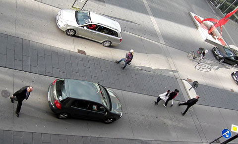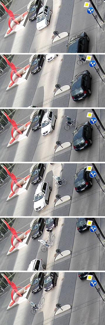 Die Sichtbarkeit ist für die Kommunikation zwischen den Verkehrsteilnehmern wesentlich. Parkflächen sollten deshalb in Shared Spaces reduziert werden. Wenn die Fahrspuren dadurch zu breit werden, können sie z. B. in Fahrradparkplätze umgewandelt werden, die die Sicht nicht behindern. Auch das ist ein Vorteil für die Radler.