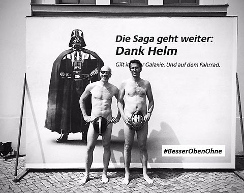 Das Foto zeigt zwei Aktivisten von Wege Held beim Nationalen Radverkehrskongress in Potsdam