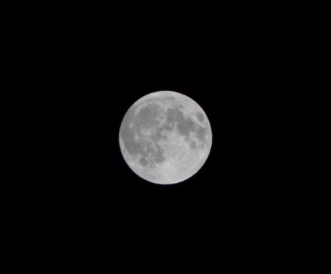 Mein Vater war zur selben Zeit – 100 km Luftlinie entfernt – wach und fotografierte die Szene ebenfalls. Mit Stativ und einer Systemkamera mit Vollformatsensor lässt sich der Mond etwas deutlicher abbilden. Durch das Streulicht bei der Mondfinsternis lässt sich optisch nicht wesentlich mehr Schärfe herausholen. Geht man näher heran, wird die Darstellung unschärfer.