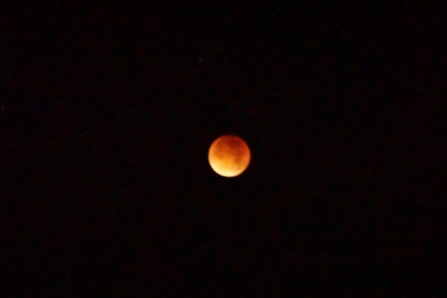 In der darauf folgenden Nacht stand ich um halb drei Uhr auf, um die angekündigte Mondfinsternis zu bestaunen (ich musste ja am Morgen nicht rechtzeitig zum Fahrrad Schrauben aufstehen). Seit einiger Zeit finde ich solche »himmlischen« Ereignisse faszinierend.