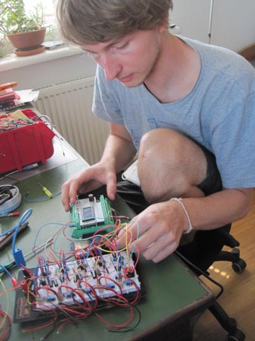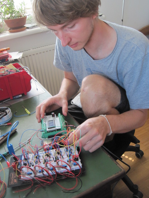 Das Signal der Wägezelle wurde über einen Messverstärker (Bosche WTE) ebenso wie das Signal des Hall-Gebers an Analog-Eingänge eines Arduino-Mikroprozessors gesendet. Um ausreichend Daten während der Messfahrten speichern zu können, wurde der Arduino-Prozessor mit einem Speichershield ergänzt, auf den die Datensätze in Blöcken zu 50 Zeilen ausgeschrieben wurden. Durch die Technik des blockweisen Schreibens aus dem Arduino-Arbeitsspeicher konnte eine sehr hohe Datenrate mit einem Aufnahmeintervall von 3-5 ms erzielt werden, die allerdings regelmäßig nach etwa 200 … 250 ms von Schreibpausen von etwa 40 ms unterbrochen wurde.