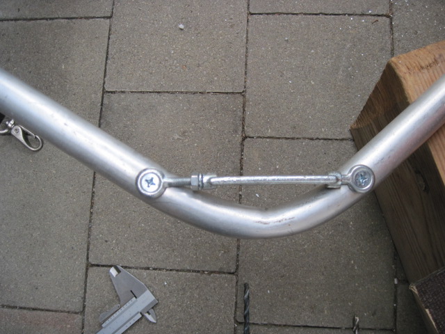 - Einziehen eines Drahtseils in die Deichsel. Das kann zwar das Auftreten eines Schadens nicht verhindern, vermeidet aber zumindest ein unkontrolliertes komplettes Abreißen der Deichsel mit unkontrollierter Entfernung des Hängers vom Rad.