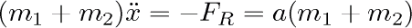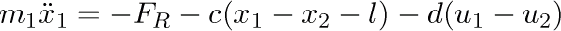Die Bewegungsgleichung für das Fahrrad erhält man, wenn man das System zwischen den Einzelmassen auftrennt und dafür als Schnittkräfte die Federkraft FF und die Dämpfungskraft FD anbringt. Am Fahrrad mit der Masse m1 steht dann die Trägheitskraft des Zugrades im Gleichgewicht mit der Bremsverzögerung sowie mit der Federkraft und der Dämpfungskraft der Kupplung, die parallel zur Federkraft angreifend angenommen wird.