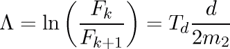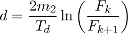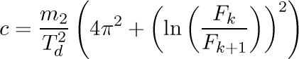 erhält man bei bekannter Schwingungsdauer Td und bekanntem Verhältnis zweier aufeinanderfolgender Kraftamplituden Fk und Fk+1 die Federkonstante c und die Dämpfungskonstante d zu