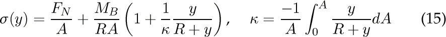 Das in Gl. 15 verwendete Formfaktorintegral K wurde für den vorliegenden Rohrquerschnitt in drei Teile zerlegt und dann numerisch integriert. A bezeichnet in Gl. 15 den Rohrquerschnitt und dA ein Querschnittsflächenelement. Mit y ist die lokale Koordinatenachse von der Rohrmitte zum Außenradius bezeichnet.