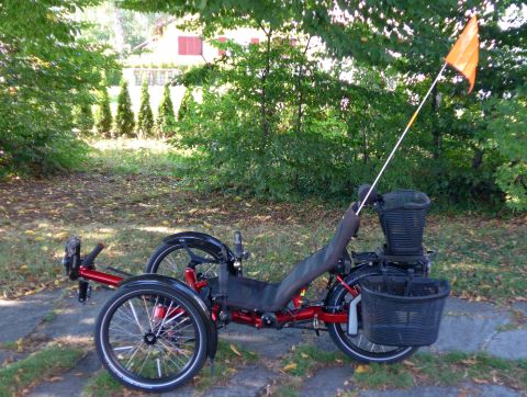 Das Liegetrike des Autors ist mit einem Gepäckträgeradapter für den nicht mehr lieferbaren Hartschalen-Rollenkoffer von Ortlieb ausgerüstet. Deshalb hängen diese Körbe so tief, dass links die Weber BO-Kupplung abgedeckt wird und nicht zusammen mit dem Korb benutzbar ist. Der Gummibalg der Weber-Kupplung leidet auch entsprechend und muss von Zeit zu Zeit ersetzt werden. Wegen der technischen Vorgaben für die Montage der NuVinci-Nabe könnte die Weber E-Kupplung nicht eingesetzt werden. Mit einem entsprechenden angepassten Montageblech zur Weber E-Kupplung für das Ausfallende könnte dieser kleine Mangel behoben werden. Dies wäre aber als Einzelanfertigung ziemlich aufwändig. Dieser Konflikt kann durch die beengten Platzverhältnisse auch bei Kompakt- oder Falträdern mit 20-Zoll-Rädern auftreten, er ist nicht spezifisch für Liegetrikes.