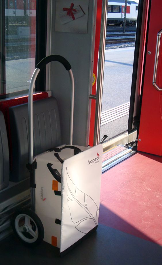 Der alte Einkaufstrolley mit der von oben zu befüllenden Tasche und dem zu kurzen Griff zum Schieben erwies sich zunehmend als unpraktisch und strapaziös für den Rücken. Deshalb wurde vor Weihnachten 2014 ein Ersatz evaluiert. Die Wahl fiel auf den Einkaufstrolley/Fahrradanhänger »Leggero Max«. Er wurde, ausgehend von einer 1998 entstandenen Idee, in einem Unterrichtsprojekt an der ETH zusammen mit der Firma Brüggli und einem Großverteiler entwickelt und auf den Markt gebracht. Der Leggero Max lässt sich wie ein ladeneigener Einkaufswagen benutzen. Nach dem Einkaufen wird die Kunststoffwanne herunter- und das Stützrad eingeklappt und der Leggero Max mit der Seitendeichsel ans Fahrrad gehängt. Aus Kompatibilitätsgründen zum bereits vorhandenen Fahrradanhänger wurde vom Autor die Version mit abschließbarer Weber-Kupplung gewählt. Die Seitendeichsel wird mit zwei Verschlüssen nach dem Schnellspannerprinzip am Bügel zum Schieben angebracht. Sie kann beim Einkaufen abgeschlossen am Fahrrad bleiben.