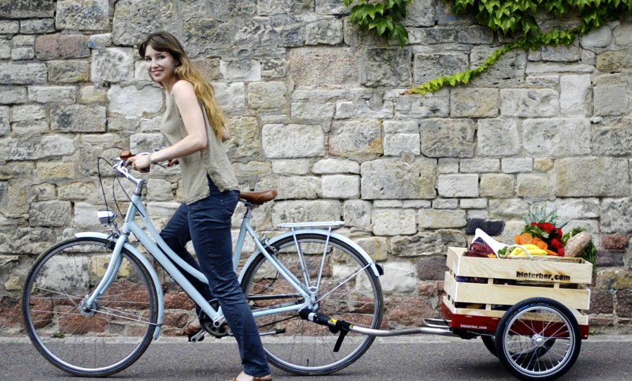 Für schwerere Einkäufe, wo z.B. Getränkekästen, Elektrogeräte usw. zu transportieren sind, empfiehlt sich ein Transportanhänger oder ein entsprechend umrüstbarer Kinderanhänger. Einen besonders durchdachtes, vielseitig wandelbarer, allerdings auch entsprechend teures Fahrradanhänger-Logistiksystem mit einer breiten Palette an Zubehör für den privaten und professionellen Einsatz bietet die Münchner Firma hinterher.com an. Das Programm wird laufend mit Neuerungen, die aus Kundenbedürfnissen entstehen, ergänzt. Damit lassen sich auch exotische Transportbedürfnisse mit maßgeschneiderten Lösungen aus dem Baukasten bewältigen.