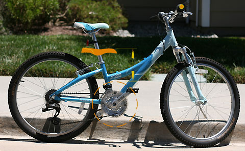 - Es gilt als Unsitte, Fahrräder »auf Zuwachs« zu kaufen – zu Recht. Allerdings hat sich eine Variante verbreite, die es mit Hilfe eines konstruktiven Tricks angeblich ermöglicht, trotzdem zu große Fahrräder zu verkaufen: Das Sattelrohr wird derartig kurz gehalten, dass ein kleines Kind in tiefster Sattelstellung mit den Füßen den Boden erreicht – Hauptsache, die Fuß-Boden-Regel ist erfüllt! Folge: geringe Leistungsfähigkeit und Beherrschbarkeit. Dazu kommt ein meist relativ hohes Gewicht.
