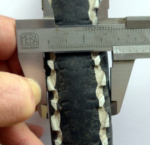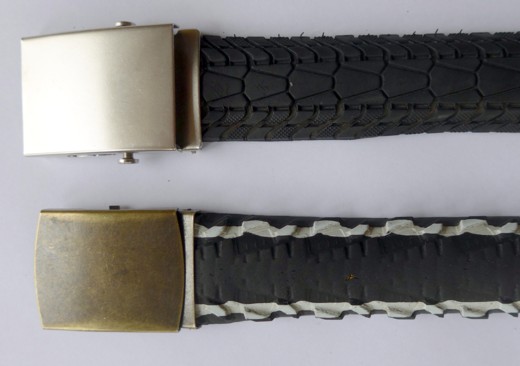 Real erprobt habe ich einen Gürtel aus einem Panaracer Pasela TG 37-622 mit einer Bolzen-Klemmschnalle von einem ausgefransten Baumwollgewebegürtel. Dieser Reifen ist nur etwa 2.000 km gelaufen, bevor ein Seitenwandschaden die weitere Nutzung am Fahrrad beendete. Die papierdünnen Seitenwände ließen sich sehr leicht schneiden und es ist einfach die Schere entlang der ausgeprägten Profilkante zu führen. Der Gürtel daraus ist in sich relativ steif und sehr angenehm in der Handhabung. Auch nach sechs Monaten täglicher Nutzung an der Arbeitshose sieht man keine Verformung oder Verschleiß.