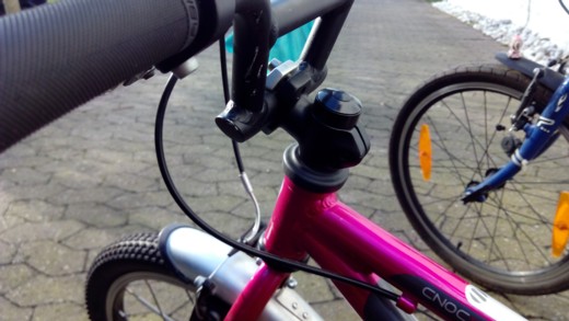 Bei der Justage der Lenkerhöhe kommen einige der besonders leichten Kinderräder an ihre Grenzen: Da statt eines Schaftvorbaus das modernere Ahead-System verbaut ist, lässt sich die Lenkerhöhe nur durch einen Adapter oder die Wahl eines anderen Vorbaus anpassen – wie auch an vielen neueren Erwachsenenrädern. Wechselt man auf einen steileren Vorbau oder baut eine Ahead-Vorbauerhöhung ein, kann man das Rad aber mit guter Ergonomie bis zum Wechsel auf das nächstgrößere Modell fahren.