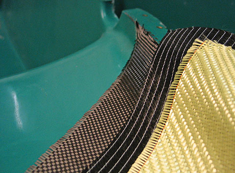 Mit Sebastians Erfahrung im Bau von Flugzeugen aus Kohlefaser wurde die Kabine zum Crashcockpit weiter entwickelt. Hierzu erstellten wir verschiedene Materialproben und brachten sie mit einem definierten Einschlag zum Bersten. So konnten wir die optimale Kombination aus Kohle- und Aramidfasern ermitteln, die bei einem Unfall die Kinder möglichst gut schützt.