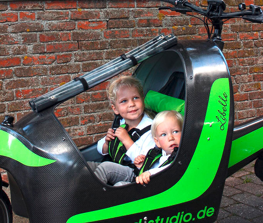 Ein weiterer Nachteil der Libelle ist, dass nur zwei Kinder bis zu einem Alter von 6 bis 7 Jahren in die Kabine passen. Bei manchen anderen Lastenrädern passen ohne Verdeck teilweise bis zu vier Kinder in die Kiste. Der Regen-, Wind- und Sonnenschutz ist dann aber meist nur noch teilweise gegeben.