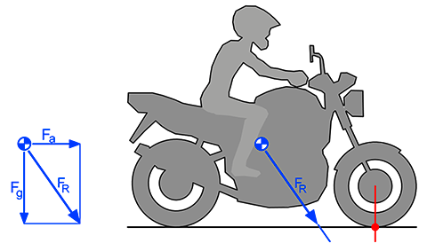 Die weitaus häufigste Ursache für ein wegrutschendes Vorderrad sind Kurven: Die entsprechenden Zentripetalkräfte greifen am Reifen an. Bremskräfte und Zentripetalkräfte am Reifen können sich vektoriell addieren. Vereinfacht ausgesprochen: Je schärfer man auf unsicheren Bodenverhältnissen in die Kurve geht, desto weniger kann man bremsen.