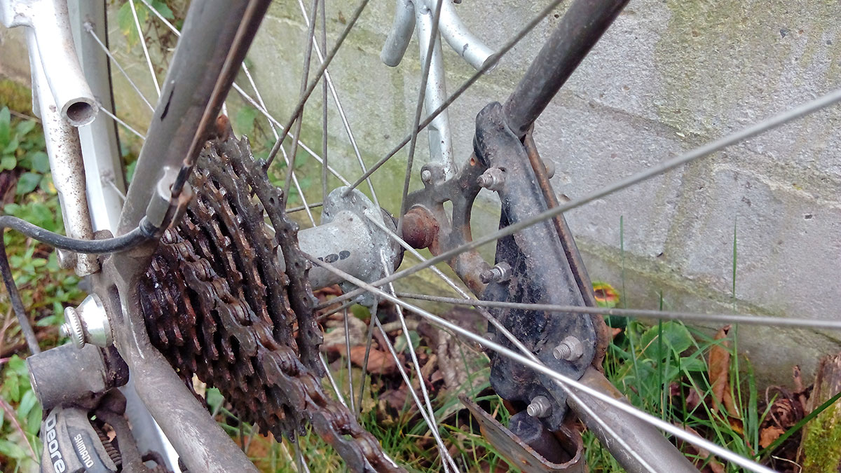 - Am Vorderrad ist eine unter Winterbedingungen günstigere Scheibenbremse montiert, wenn auch nur ein übrig gebliebenes mechanisches Modell. Am Hinterrad bietet der alte Rahmen diese Möglichkeit nicht. Zumindest vorne ist eine vereiste Felge kein Problem mehr.