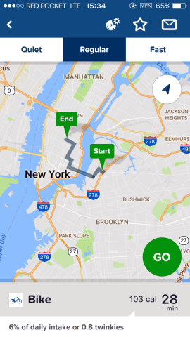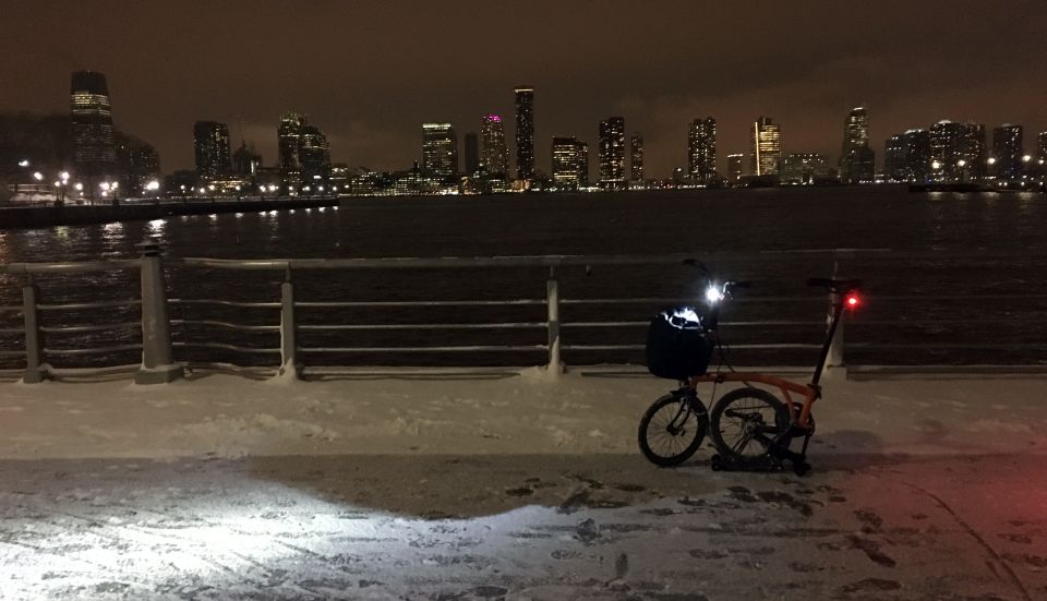 Meine Wohnung liegt in Williamsburg in Brooklyn. Meine erste Anschaffung zum Umzug nach New York war ein wunderschönes orange-schwarzes Faltrad von Brompton aus London. Bromptons sind teuer in der Anschaffung, mit über 12 kg keine Leichtgewichte und verwenden teils archaisch anmutende Komponenten. Aber die Zuverlässigkeit ist spitze, das Fahrgefühl angenehm spritzig und der Service fantastisch. Das Faltrad ist seither mein täglicher Begleiter in New York und ich bin sehr zufrieden damit.